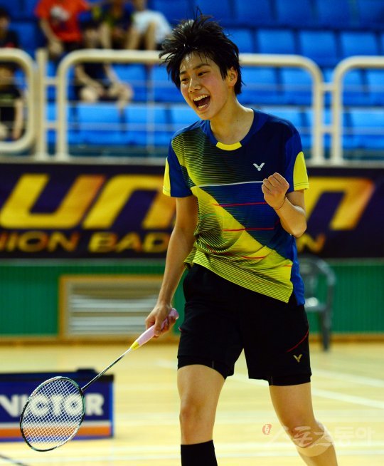 여자고등부단식 장곡고등학교 안채현과 청송여자고등학교 송현주의 4강경기에서 안채현이 결승에 진출한 뒤 포효하고 있다.