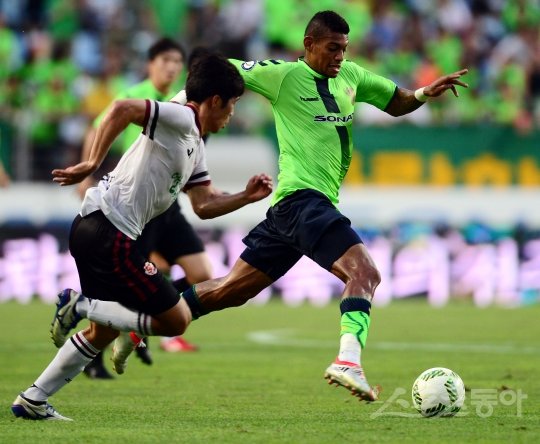 30일 전주 월드컵경기장에서 열린 ‘현대오일뱅크 K리그 클래식 2016’ 전북 현대와 광주 FC의 경기에서 전북 로페즈가 광주 수비수를 제치며 돌파하고 있다.