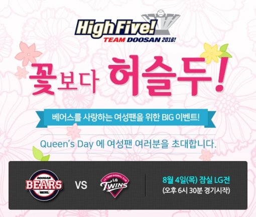 프로야구 두산베어스가 4일(목) 잠실 LG전 홈경기를 ‘퀸스 데이(Queen’s Day)’로 지정하고 여성 팬을 위한 다양한 이벤트를 펼친다.