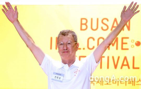 전유성이 4일 오후 서울 용산구 동자아트홀에서 열린 제4회 부산국제코미디페스티벌 기자회견에 참석해 포토타임을 하고 있다.
