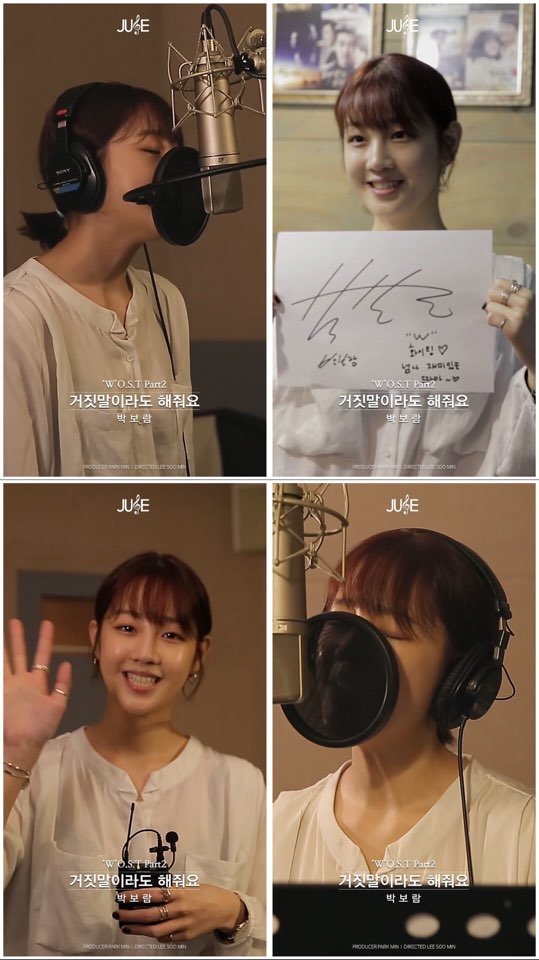 쥬스TV가 오늘(4일) 오후 6시, 박보람이 부른 드라마 'W' OST '거짓말이라도 해줘요'의 녹음 현장을 담은 영상을 공개할 예정이다.
