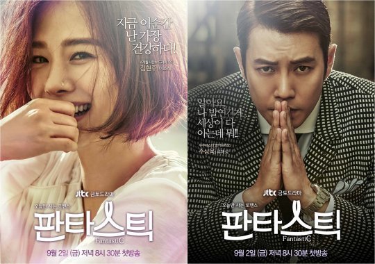 ‘청춘시대’후속으로 오는 9월 첫 방송되는 JTBC 새 금토드라마 ‘판타스틱’(연출 조남국, 극본 이성은, 제작 에이스토리)측이 5일 김현주와 주상욱의 위트 넘치는 반전매력이 돋보이는 캐릭터 포스터를 공개했다.‘판타스틱’은 이판사판‘오늘만 사는’멘탈甲 드라마 작가 이소혜(김현주 분)와‘똘끼충만’발연기 장인 톱스타 류해성(주상욱 분)의 짜릿한‘기한 한정 연애담’을 그린 예측불가 로맨틱 코미디로, 아름다운 오늘을 만끽하며 사는 게 얼마나 판타스틱한 일인지를 두 사람의 짧고 짜릿한 로맨스를 통해 유쾌하게 그려낼 예정이다.