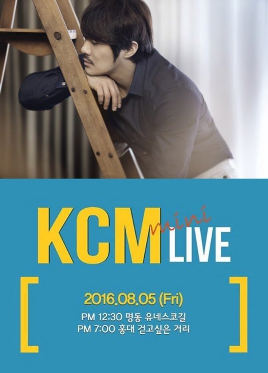 사진 속에는 KCM이 5일(금), 오후 12시 30분과 오후 7시에 각각 명동 유네스코길, 홍대 걷고 싶은 거리를 찾아 미니 라이브를 펼친다는 내용이 담겨 있어 눈길을 끌었다.