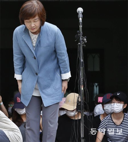 제출 후 기자들과 만난 최 총장은 사퇴를 요구하고 있는 재학생 및 졸업생들의 요구에 대해 굳은 표정으로 “지금은 빨리 학교를 안정화하고 화합하는 것이 우선”이라며 “그 문제는 바로 결정할 것이 아니다”고 말한 뒤 이내 자리를 떴다.