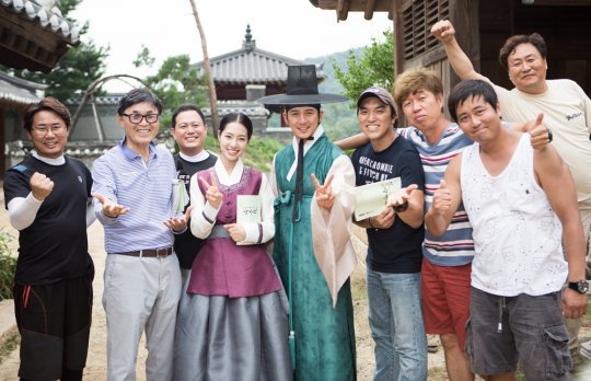 공개된 스틸 속 ‘옥중화’ 팀은 카메라를 향해 승리의 에너지를 전하고 있는 모습. 진세연(옥녀 역)과 고수(윤태원 역)는 대열의 정 중앙에 서서 ‘승리의 브이’ 포즈를 취하고 있어 눈길을 끈다. 이어 ‘옥중화’의 수장 이병훈 감독과 김성용 조감독이 진세연-고수의 양 옆에 서서 손을 쭉 뻗어 보이고 있는데, 진세연-고수 커플의 ‘승리의 브이’를 카메라에 전달하는 듯한 포즈에서 위트가 묻어난다. 또한 다른 스태프들은 ‘따봉’부터 주먹을 불끈 쥔 ‘원조 파이팅’에 이르기까지 다채로운 응원 포즈들로 활기찬 에너지를 견인하고 있다.
