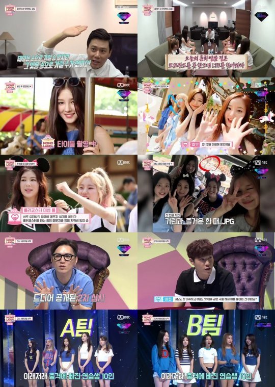 5일 오후 방송한 Mnet '서바이벌 모모랜드를 찾아서'에서는 모모랜드 연습생 10인의 제작발표회 후기와 놀이공원 방문기가 전파를 탔다.