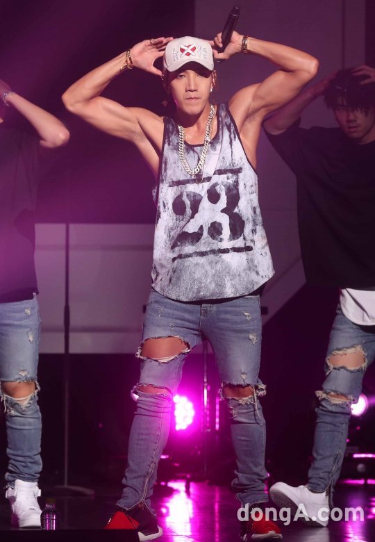 그룹 2PM의 준케이가 8일 오후 서울 광진구 예스24라이브홀에서 열린 미니 앨범 쇼케이스에서 신곡을 선보이고 있다.