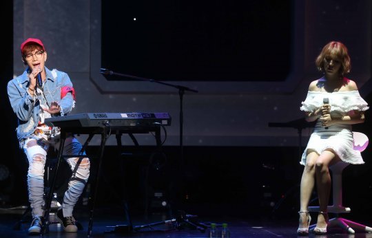 그룹 2PM의 준케이가 8일 오후 서울 광진구 예스24라이브홀에서 열린 미니 앨범 쇼케이스에서 신곡을 선보이고 있다.