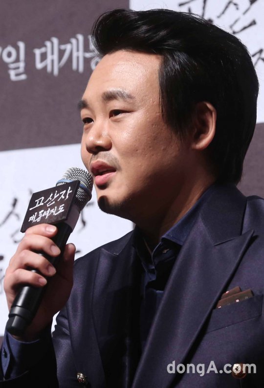배우 김인권이 9일 오전 서울 강남구 압구정 한 멀티플렉스관에서 열린 영화 '고산자 대동여지도' 제작보고회에 참석해 인사말을 하고 있다.