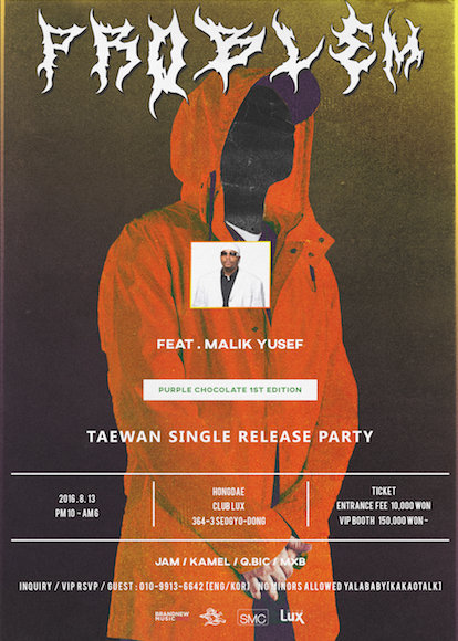 브랜뉴뮤직의 R&B 보컬리스트 태완이 13일, 홍대의 클럽에서 미국 유명 뮤지션 Kanye West(카니예 웨스트)의 프로듀서 Malik Yusef(말릭 유세프)와 손잡고 자신의 새 싱글 ‘Problem’의 릴리즈 파티를 연다.