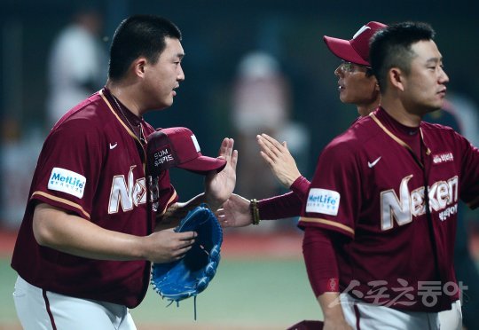 9일 수원 kt위즈파크에서 열린 ‘2016 타이어뱅크 KBO리그’ kt 위즈와 넥센 히어로즈의 경기에서 넥센이 6-2 승리를 거뒀다. 경기 후 시즌 30세이브를 달성한 넥센 김세현이 염경엽 감독과 하이파이브를 나누고 있다.