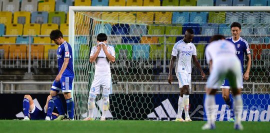 10일 수원월드컵경기장에서 열린 ‘현대오일뱅크 K리그 클래식 2016’ 수원 삼성과 울산 현대의 경기에서 양 팀 득점 없이 무승부를 기록했다. 경기 후 양 팀 선수들이 아쉬워하고 있다.