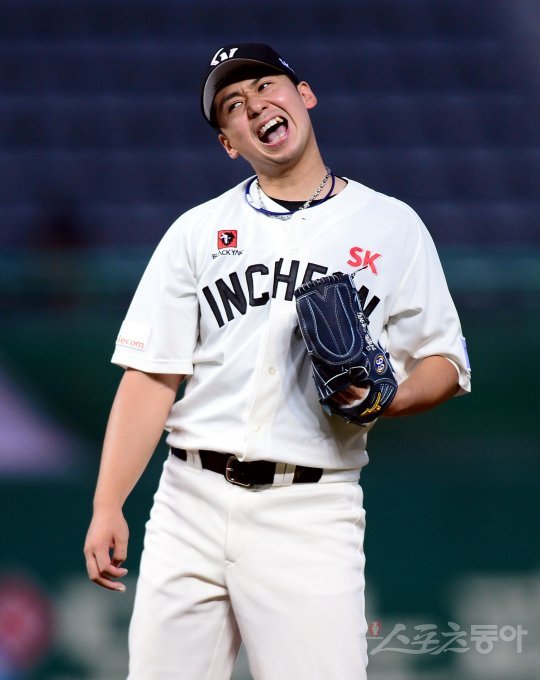 11일 인천 SK행복드림구장에서 ‘2016 타이어뱅크 KBO리그’ SK 와이번스와 kt 위즈의 경기가 열렸다. SK 선발투수 윤희상이 3회초 1사에서 kt 김선민을 삼진아웃을 잡은 뒤 소리치고 있다.