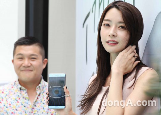 걸그룹 헬로비너스의 나라가 12일 오전 서울 강남구 임피리얼팰리스 호텔 야외수영장에서 열린 SK텔레콤 'T갤럭시 클럽 론칭 쇼케이스'에 참석해 포토타임을 하고 있다.