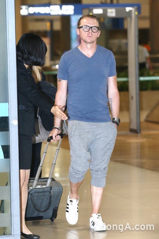 할리우드 배우 사이먼 페그가 14일 오후 영화 '스타트렉 비욘드' 홍보 차 인천공항을 통해 입국하고 있다.