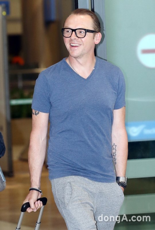 할리우드 배우 사이먼 페그가 14일 오후 영화 '스타트렉 비욘드' 홍보 차 인천공항을 통해 입국하고 있다.