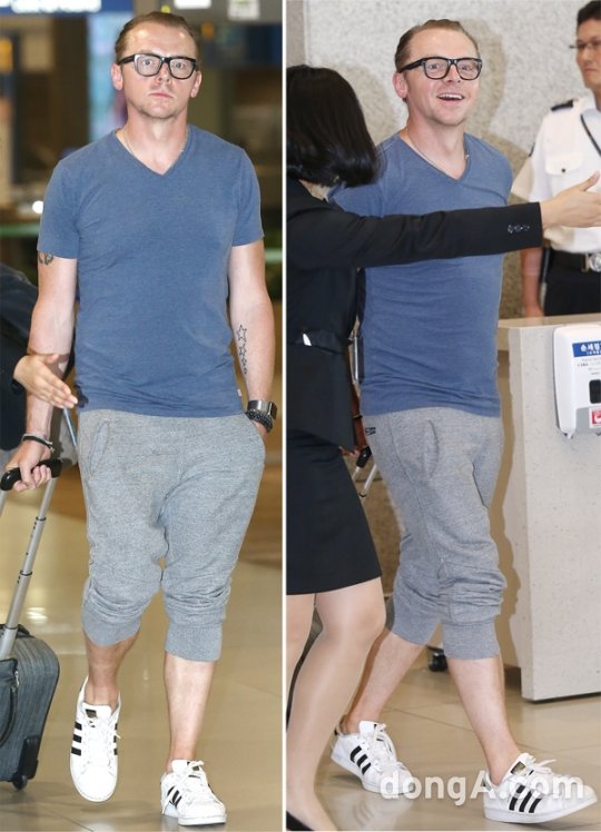 할리우드 배우 사이먼 페그가 14일 오후 영화 '스타트렉 비욘드' 홍보 차 인천공항을 통해 입국하고 있다.
