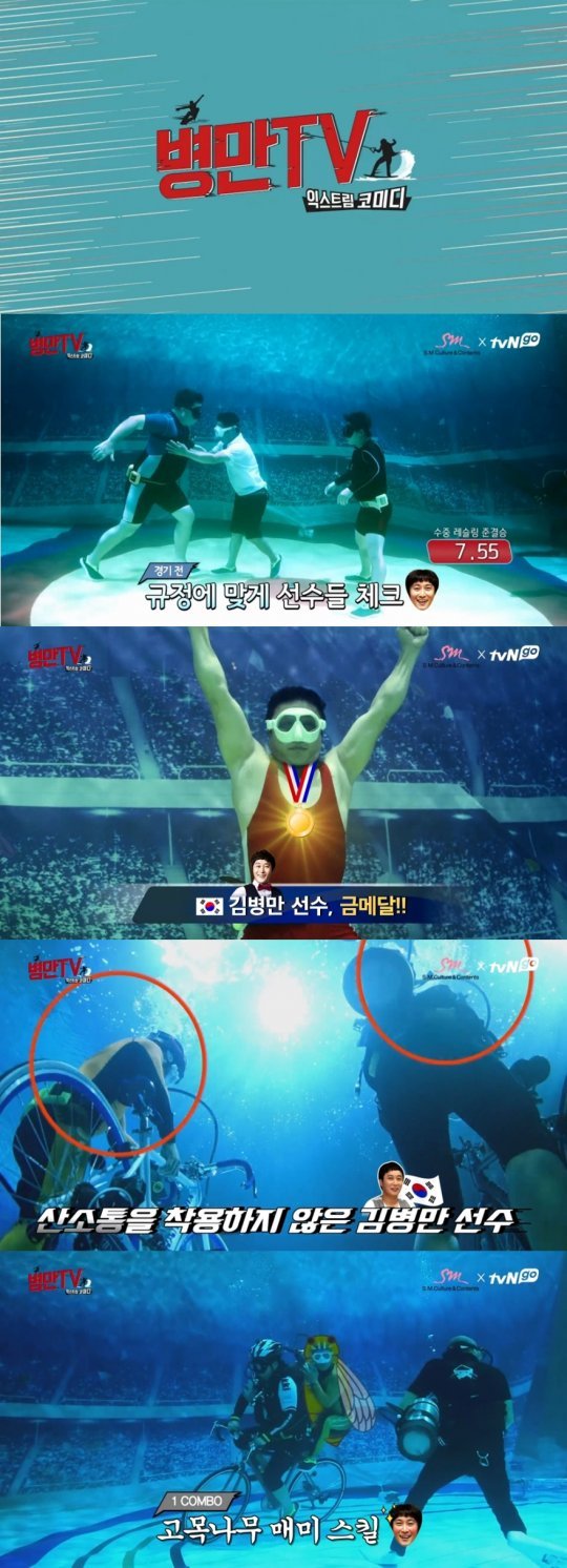 김병만은 게임에 진지하게 임하는 가운데 수중 경기의 특성을 100프로 활용해 변칙 스킬을 선보이거나 예상치 못한 동작들로 수중 개그를 전했으며 장난기 가득한 심판으로 등장해 게임을 지연시키는 등 재간둥이로서의 면모를 여과 없이 보여줬다.