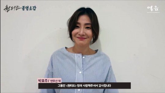 18일 종영을 앞두고 박효주는 소속사 열음엔터테인먼트 공식 포스트를 통해 “안녕하세요 '원티드'에서 연우신 역할, 연작가 역을 맡은 배우 박효주 입니다”로 첫 운을 띄었다.