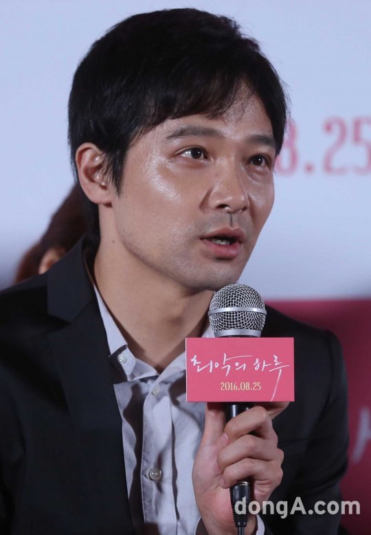 배우 이와세 료가 18일 오후 서울 용산 한 멀티플렉스관에서 열린 영화 '최악의 하루' 언론배급시사회에 인사말을 하고 있다.