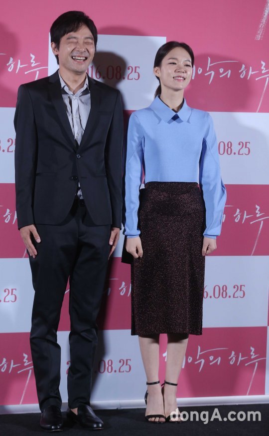 배우 이와세 료(왼쪽)와 한예리가 18일 오후 서울 용산 한 멀티플렉스관에서 열린 영화 '최악의 하루' 언론배급시사회에 참석해 포토타임을 하고 있다.