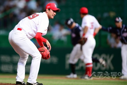 18일 인천 SK행복드림구장에서 ‘2016 타이어뱅크 KBO리그’ SK 와이번스와 두산 베어스의 경기가 열렸다. 7회초 2사 1루에서 두산 양의지에게 투런포를 허용한 SK 김광현이 아쉬워하고 있다.