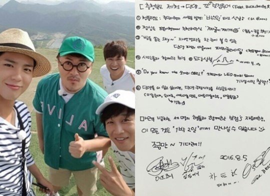KBS ‘1박2일’ 측은 공식 페이스북을 통해 박보검이 친필로 작성한 여행계획서와 멤버들과 함께한 인증샷을 공개했다.