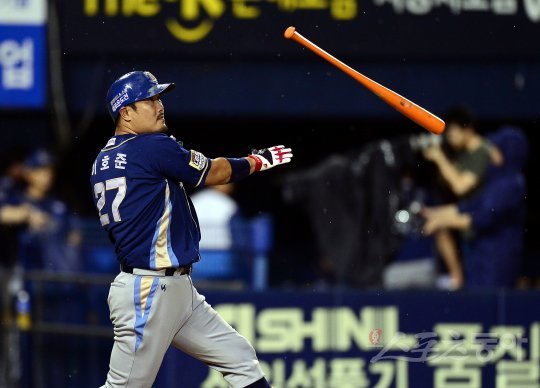 21일 서울 잠실야구장에서 ‘2016 타이어뱅크 KBO 리그’ NC다이노스와 두산베어스 경기가 열렸다. 4회초 무사 NC 이호준이 우전 2루타를 치고 있다.