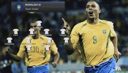 호나우두는 21일(이하 한국시각) 공개된 잉글랜드축구협회 FATV와의 인터뷰에서 자신을 포함한 베스트 11 명단을 꼽았다.