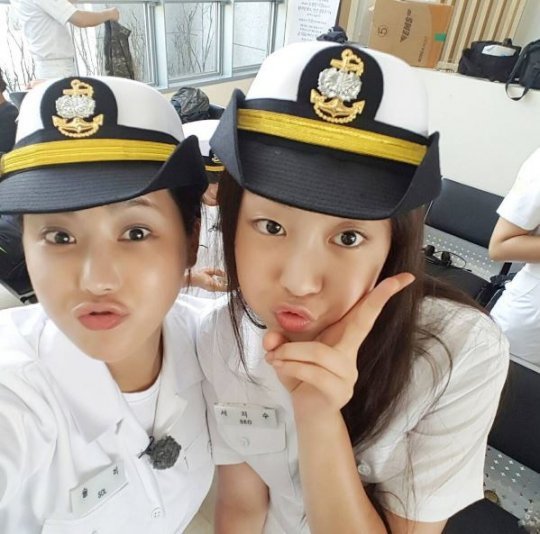 공개된 사진 속 솔비와 서지수는 해군부사관 옷을 입고 입술을 내민 표정과 함께 다정한 자매 분위기를 연출했다.