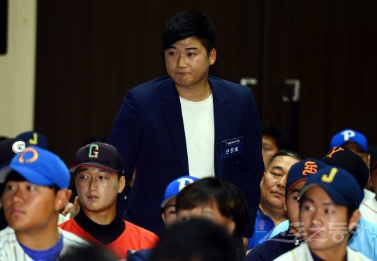 22일 서울 양재동 더케이호텔에서 ‘2017 KBO 신인 드래프트’가 열렸다. NC에 2차 1라운드 전체 8순위로 지명된 신진호가 인사하고 있다.