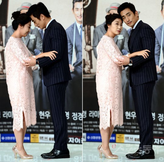 25일 서울 영등포 타임스퀘어에서 열린 KBS 2TV 주말드라마 ‘월계수 양복점 신사들’ 제작발표회에 참석한 라미란과 차인표가 앙드레김 피날레 포즈를 취하고 있다. ‘월계수 양복점 신사들’은 제작기 사연을 가진 네 남자가 모여 다이내믹하고 파란만장한 인생이야기를 그린 드라마이다.