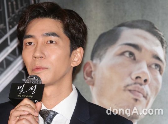 배우 신성록이 25일 오후 서울 왕십리 한 멀티플렉스관에서 열린 영화 '밀정' 언론시사회에 참석해 인사말을 하고 있다.