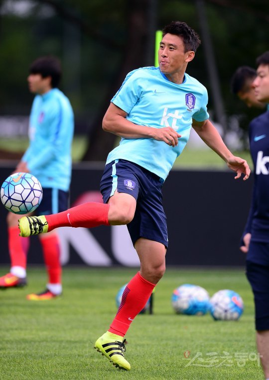 중국과 2018 러시아 월드컵 아시아 지역 최종예선 1차전을 앞둔 축구대표팀이 30일 파주트레이닝센터(NFC)에서 훈련을 가졌다. 대표팀 구자철이 패스를 하고 있다.