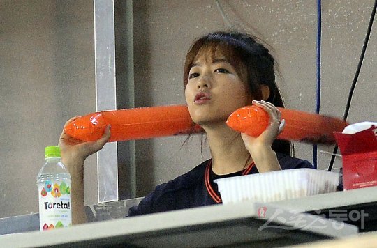 30일 서울 잠실야구장에서 ‘2016 타이어뱅크 KBO 리그’ 한화이글스와 두산베어스 경기가 열렸다. 배우 박보영이 한화를 응원하고 있다.