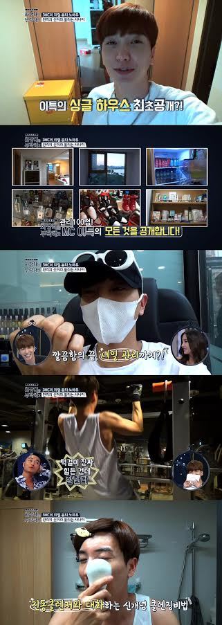 이특은 한강이 훤히 내려다 보이는 비밀스러운 화이트톤 침실과 모던한 스타일의 호텔식 하우스를 셀프 카메라에 담았다. 자취 13개월 차, 싱글남의 집이라고는 할 수 없을 정도로 깔끔하게 정리된 내부가 눈길을 끈다. 특히 편의점을 방불케 할 정도로 잘 정리된 냉장고와 전문 업체 못지않은 다양한 청소도구가 갖춰져 있어 패널까지 놀라움을 금치 못하게 만들었다는 후문이다.