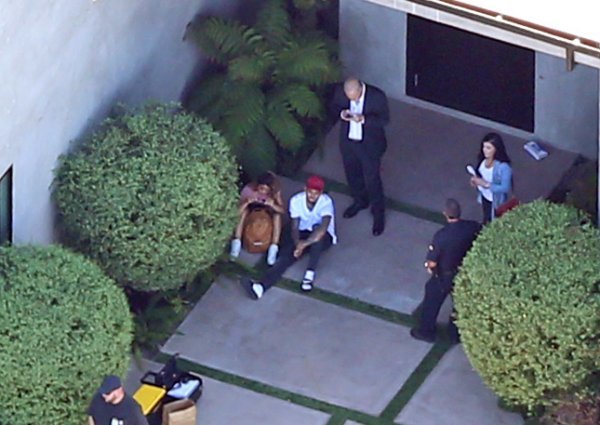 공개된 사진 속 경찰들이 크리스 브라운 집을 수색중이고 계단에 허탈한 모습으로 앉아 있는 크리스 브라운의 모습을 확인할 수 있다.