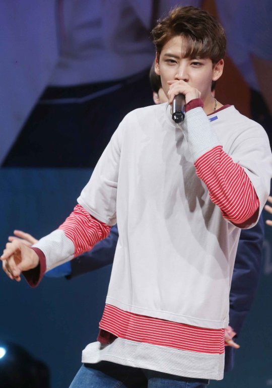 6인조 보이그룹 헤일로의 인행이 31일 오후 서울 강남구 일지아트홀에서 열린 두번째 미니 앨범 'HAPPY DAY(해피데이) 발매 쇼케이스에서 공연을 선보이고 있다.