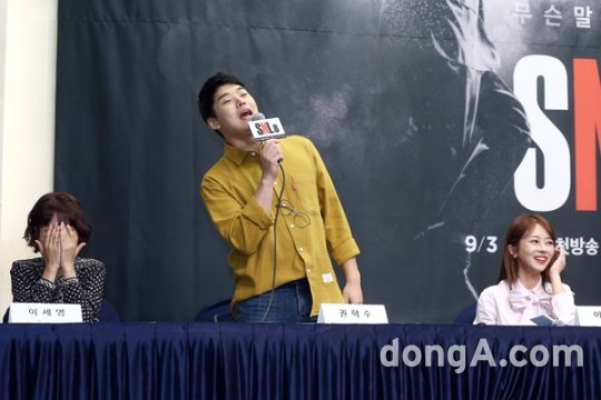 배우 권혁수가 31일 오후 서울 마포구 스탠포드호텔에서 열린 케이블채널 tvN 'SNL 8' 제작발표회에 참석해 포토타임을 하고 있다.