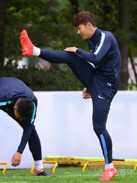 중국과 2018 러시아 월드컵 아시아 지역 최종예선 1차전을 앞둔 축구대표팀이 31일 파주트레이닝센터(NFC)에서 훈련을 가졌다. 손흥민이 훈련을 하고 있다.
