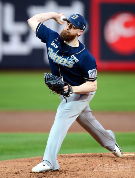 31일 수원 kt위즈파크에서 ‘2016 타이어뱅크 KBO리그’ kt 위즈와 NC 다이노스의 경기가 열렸다. NC 선발투수 해커가 힘차게 볼을 던지고 있다.
