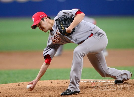 1일 서울 고척스카이돔에서 ‘2016 타이어뱅크 KBO리그’ 넥센 히어로즈와 SK 와이번스의 경기가 열렸다. 1회말 SK 선발 박종훈이 힘차게 공을 던지고 있다.