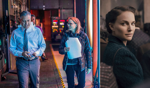 영화 ‘머니 몬스터’의 감독 조디 포스터와 주연배우 조지 클루니(맨 왼쪽)-‘사랑과 어둠의 이야기’의 감독과 주연을 맡은 나탈리 포트먼. 사진제공|UPI코리아·유로커뮤니케이션
