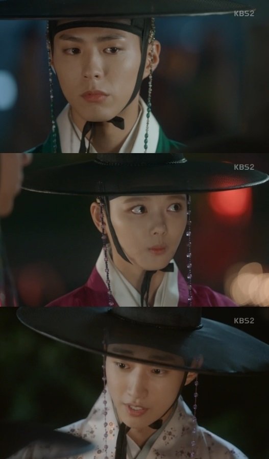 KBS 2TV 월화드라마 ‘구르미 그린 달빛’ 5일 방송에서는 이영(박보검 분)이 홍라온(김유정 분)을 두고 김윤성(진영 분)과 신경전을 벌이는 모습이 그려졌다.