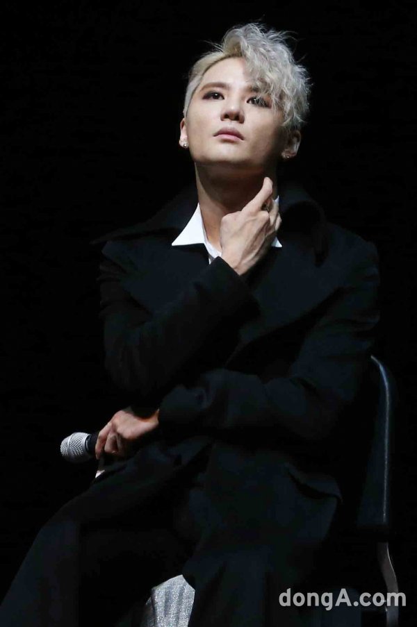 배우 김준수가 6일 오후 경기 성남아트센터 오페라하우스에서 열린 뮤지컬 '도리안 그레이' 프레스콜에서 포토타임을 하고 있다,