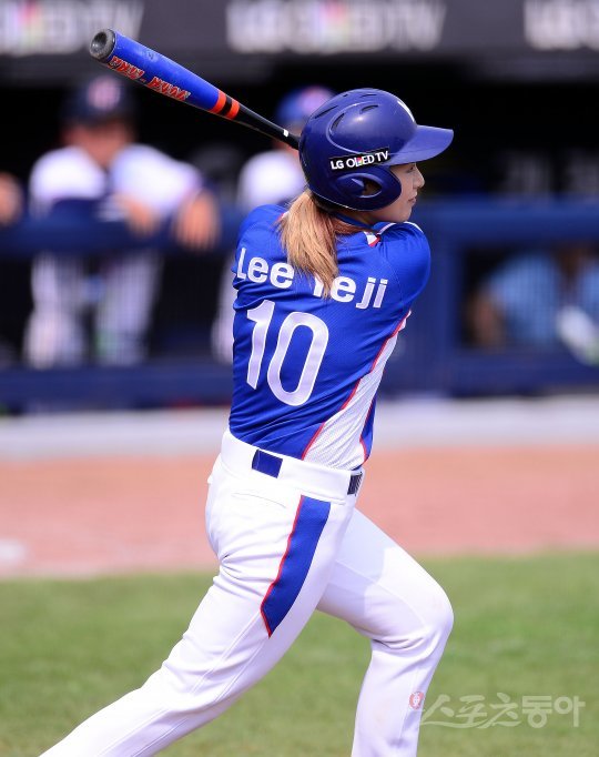 WBSC(세계야구소프트볼연맹) 2016 기장여자야구월드컵 슈퍼라운드 한국과 대만 경기가 7일 부산 기장군 현대차 드림볼파크에서 열렸다. 3회초 1사 3루 한국 이예지가 1타점 적시타를 치고 있다.