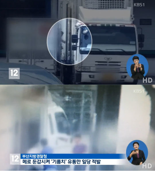사진|왁스 원료 기름치 유통. KBS1 뉴스 캡처
