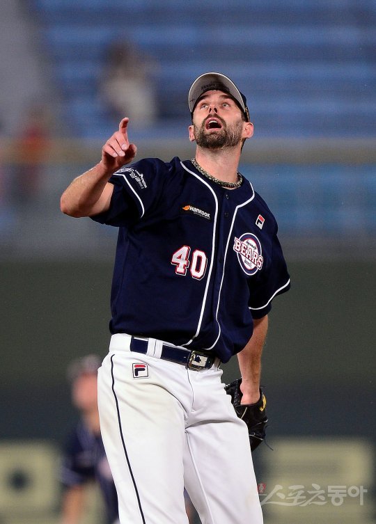 7일 부산 사직야구장에서 ‘2016 타이어뱅크 KBO 리그’ 두산베어스와 롯데자이언츠 경기가 열렸다. 선발 투수로 등판한 두산 니퍼트가 4회말 2사 롯데 손아섭의 파울볼 위치를 알려주고 있다.