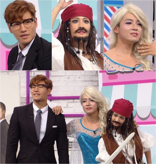 공개된 사진에는 김종국-김지민-허경환이 영화 속 캐릭터로 분장한 모습이 담겨있다. 김종국은 영화 ‘킹스맨’해리, 김지민은 영화 ‘캐리비안의 해적’잭 스패로우, 허경환은 애니메이션 ‘겨울왕국’엘사로 완벽히 변신했다.