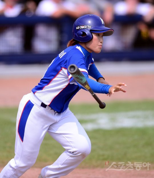 WBSC(세계야구소프트볼연맹) 2016 기장여자야구월드컵 슈퍼라운드 한국과 캐나다 경기가 9일 부산 기장군 현대차 드림볼파크에서 열렸다. 4회초 1사 1루 한국 김하늘이 우전 2루타를 치고 있다.